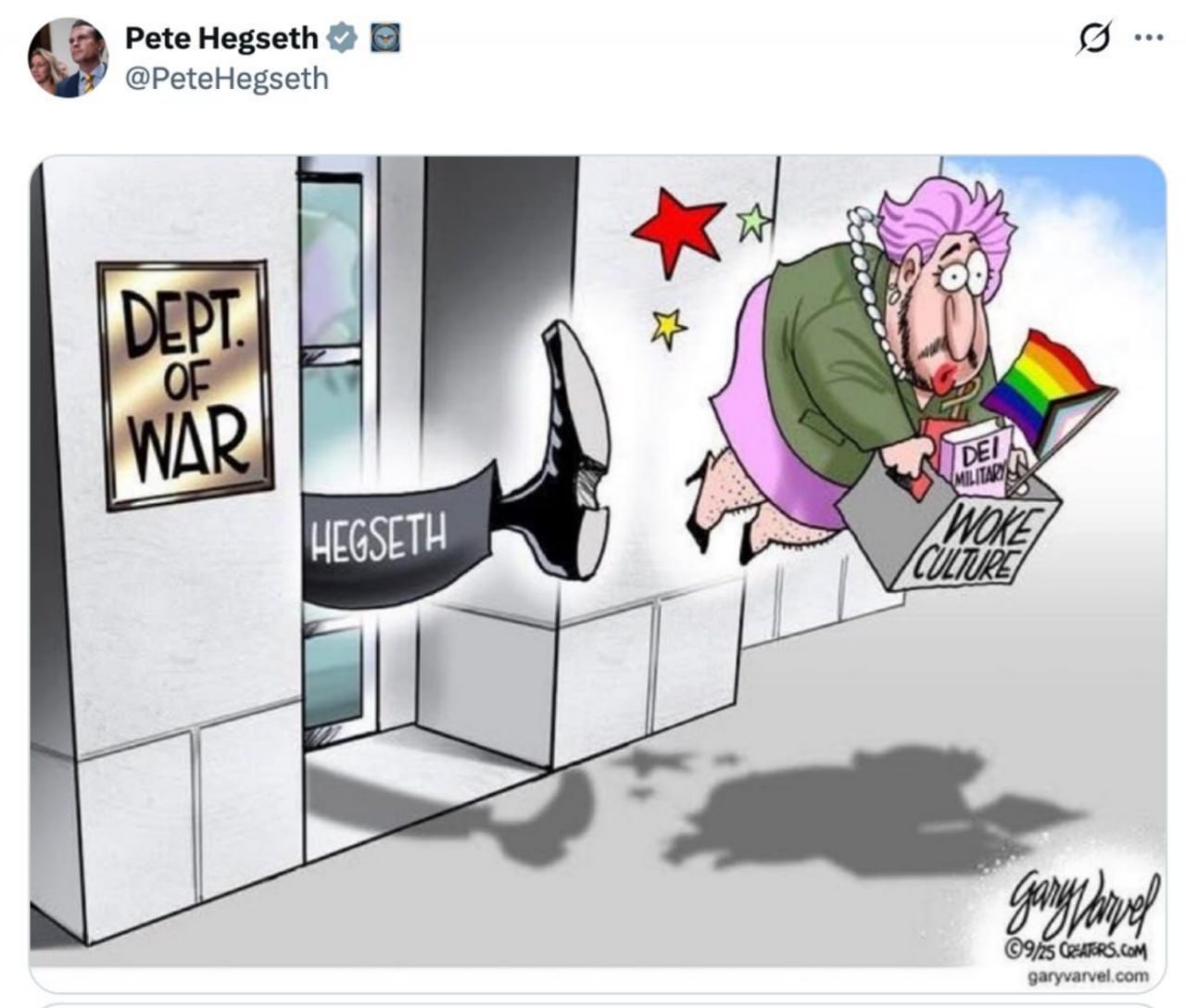 Гомосятины и СЖВ в Пентагоне не будет. Министр войны Хегсет коротко живописует новую внутреннюю политику Пентагона в отношении "боевых пи...расов и туалетов для трансформеров". Эх, не будет больше мемных фоток при радужные вертолеты и офицеров в юбках.