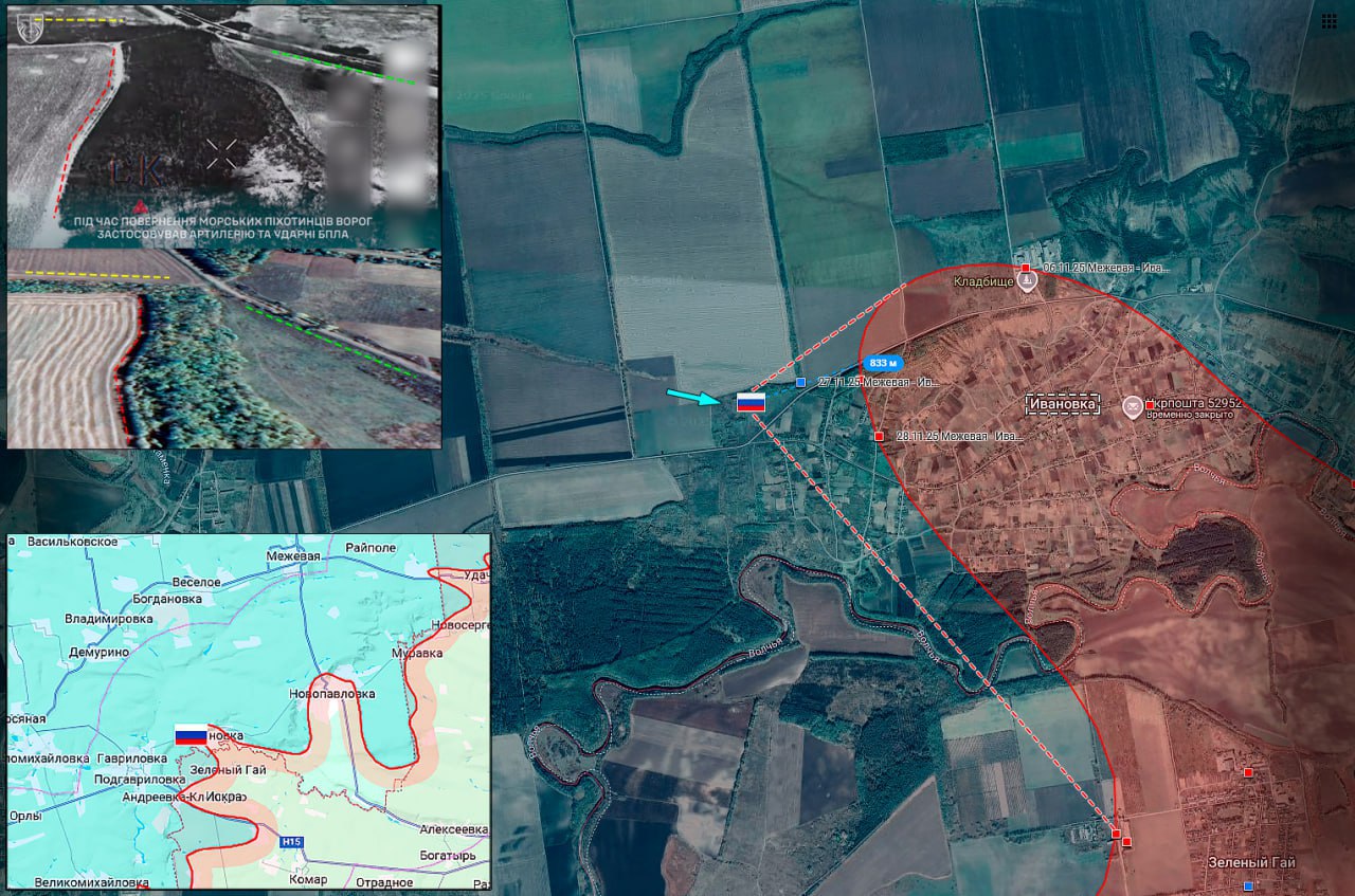 Увеличение зоны контроля ВС РФ более 800 метров в западной части Ивановки.